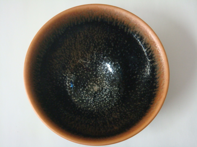 簡單而言就是在黑釉器上出現灰色或漆黑的小斑點,斑點周圍有金.銀色金屬光澤銀藍色的暈環。